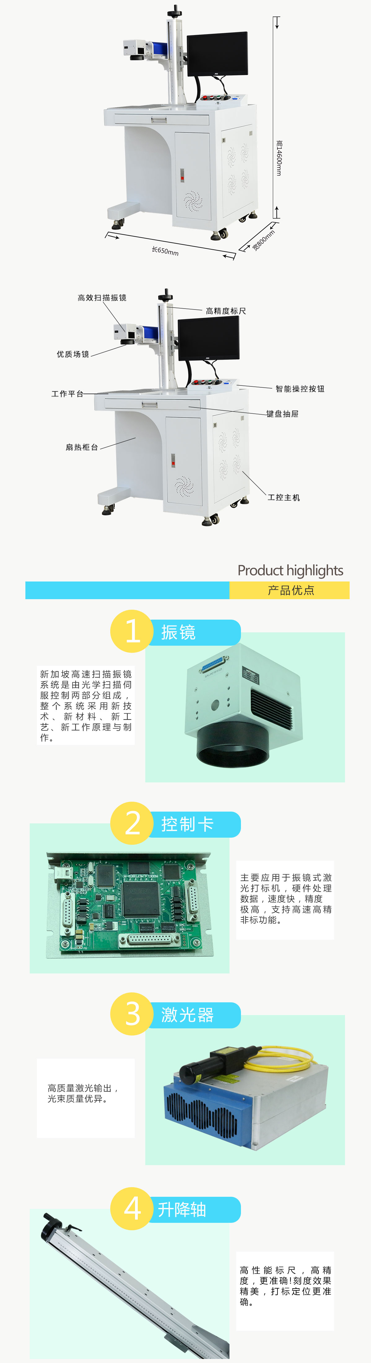 光纖激光打機(jī)是目前市面上通用的激光設(shè)備機(jī)型,由于其價格適中,應(yīng)用廣泛,獲得廣大五金電鍍塑膠電子產(chǎn)品制造廠商青睞,加工效果顯著,一直是業(yè)界\"口碑機(jī)型\"。